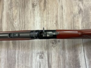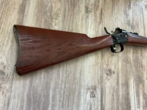 I am excited to put this cap gun up. So, here goes…. up for sale today is a Mattel Indian Scout Cap Rifle in nice condition. This cap rifle has been played with very little. The Genuine Mattel Shootin Shell Rolling Block Rifle Cap Gun (Also called Indian Scout Rifle) is constructed of Mattel faux wood stock with metal barrel and trigger assembly. It measures 29 1/2″ long. It may have had a few caps fired in it, and some overall minor storage and play wear, but it is working all the way including the secret storage compartment in the butt of the toy cap gun. No caps or Mattel shootin shell bullets are included, but are available on this website.